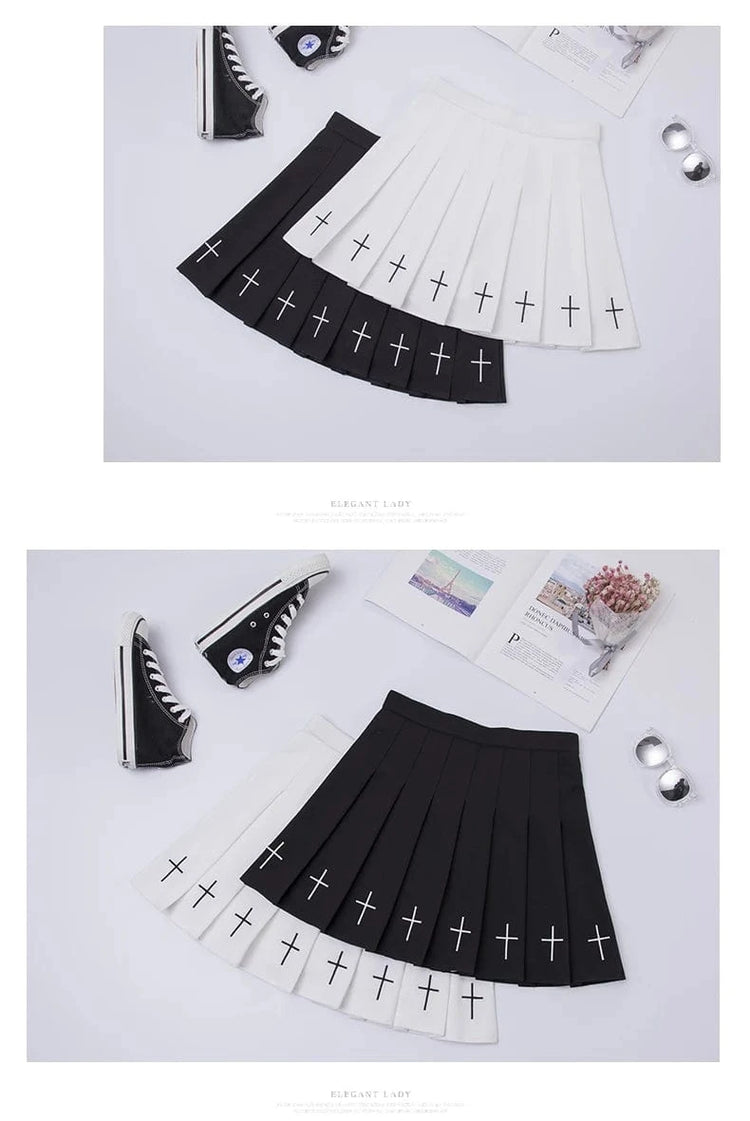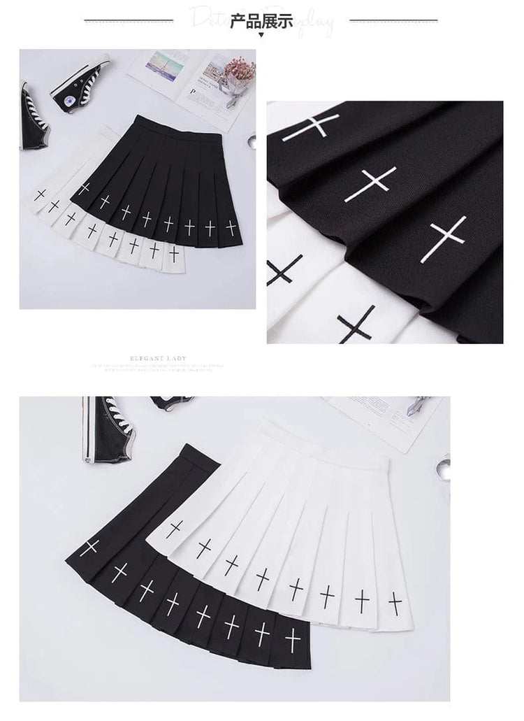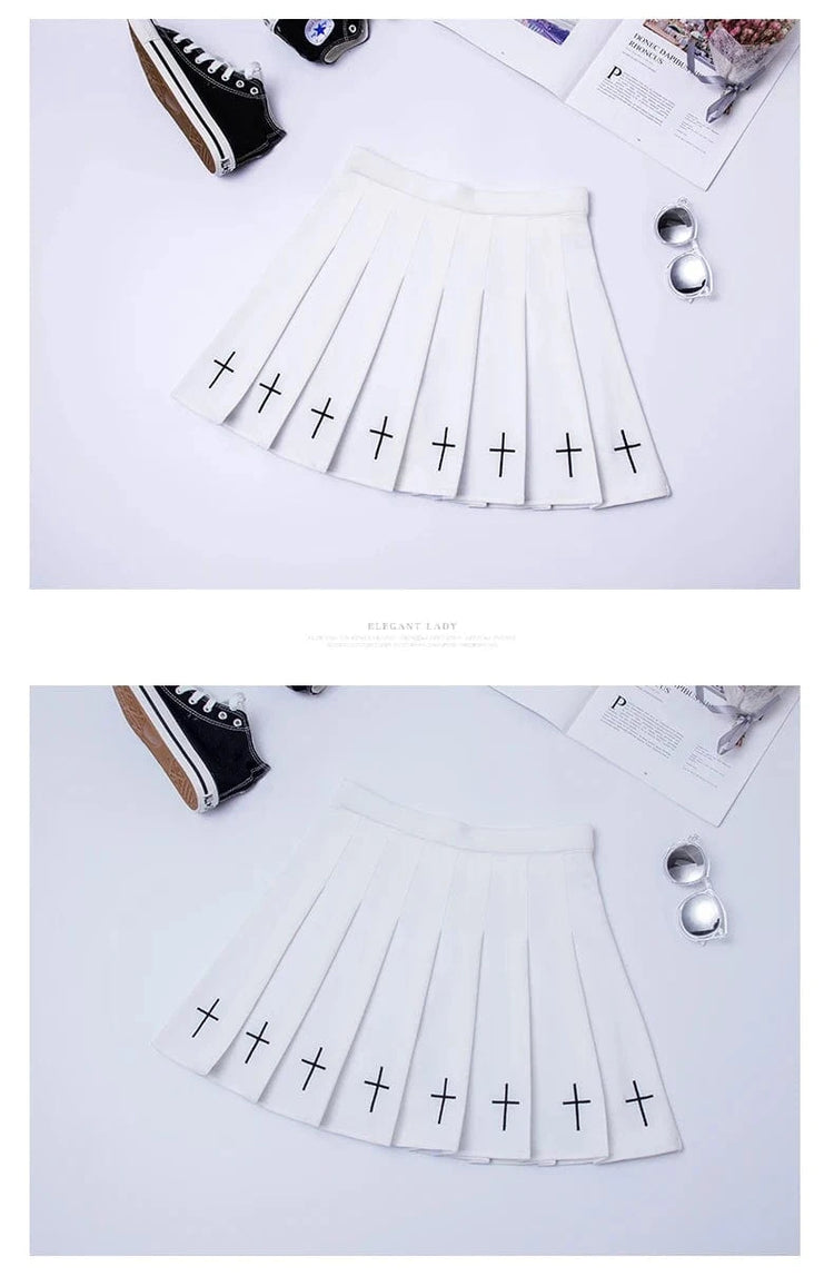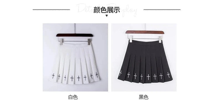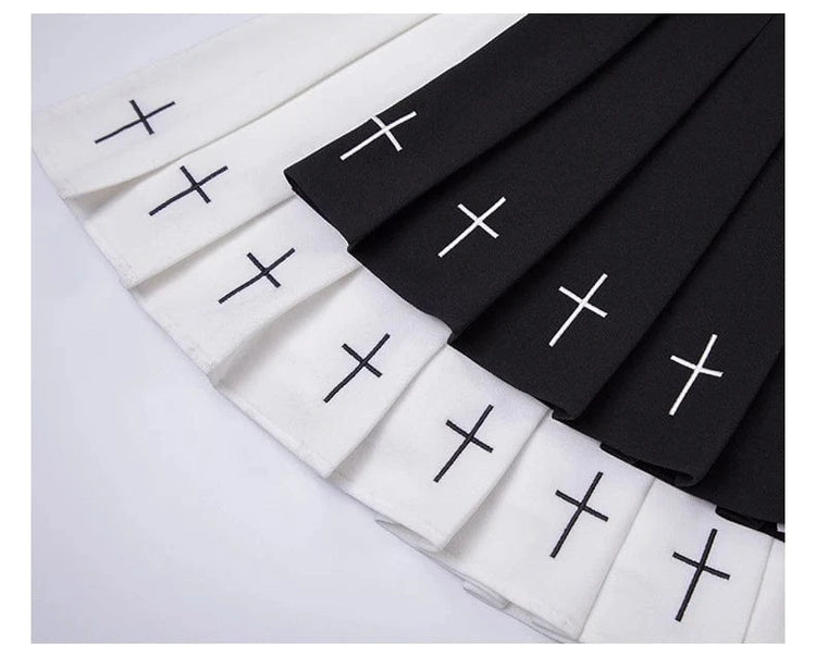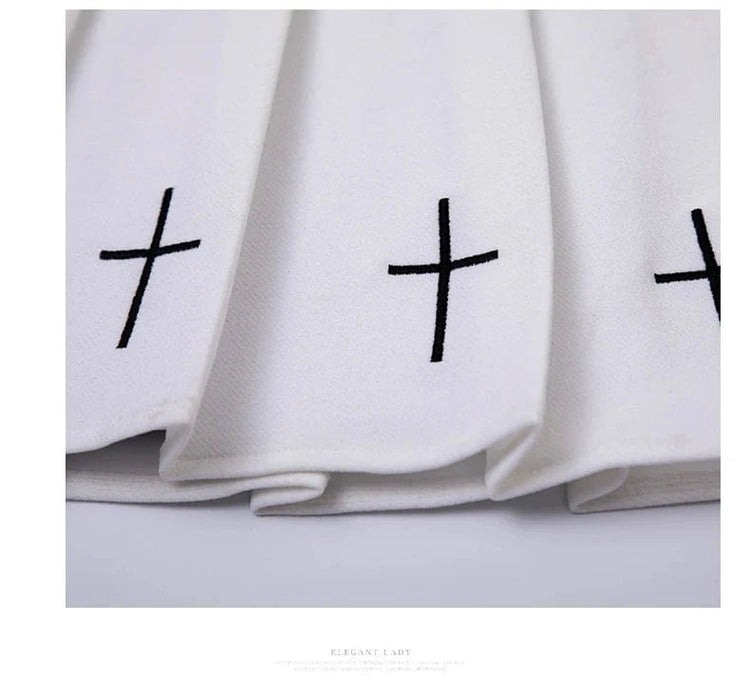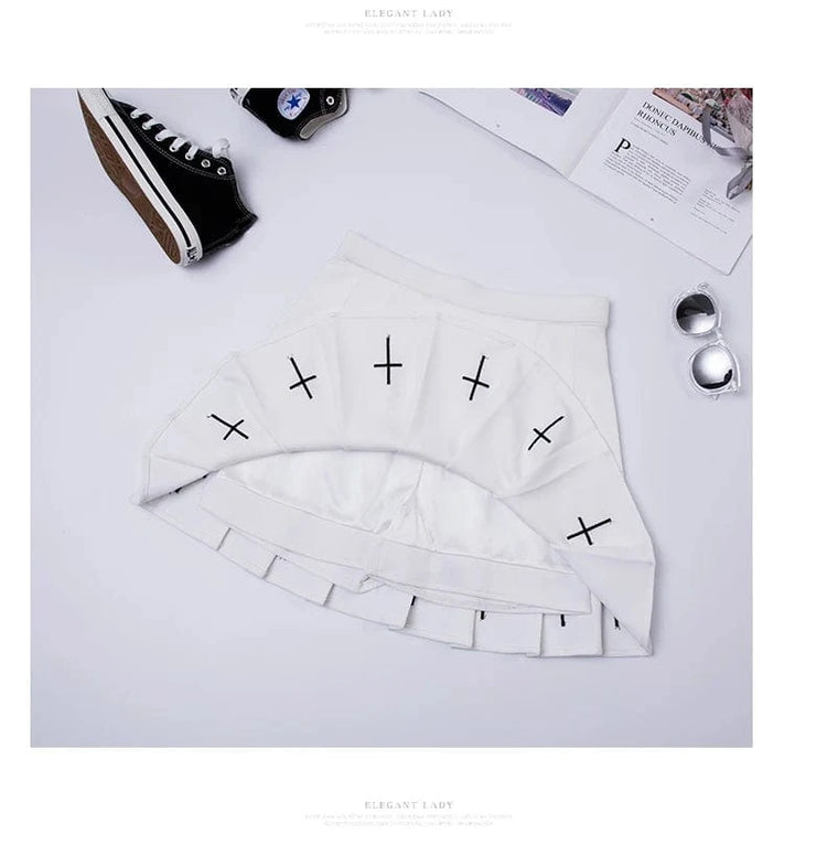 Falda plisada de cintura alta amb brodat creuat i cintura elàstica Harajuku 2024 per a dones, faldilla negra, faldilla plisada