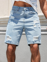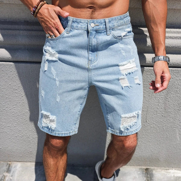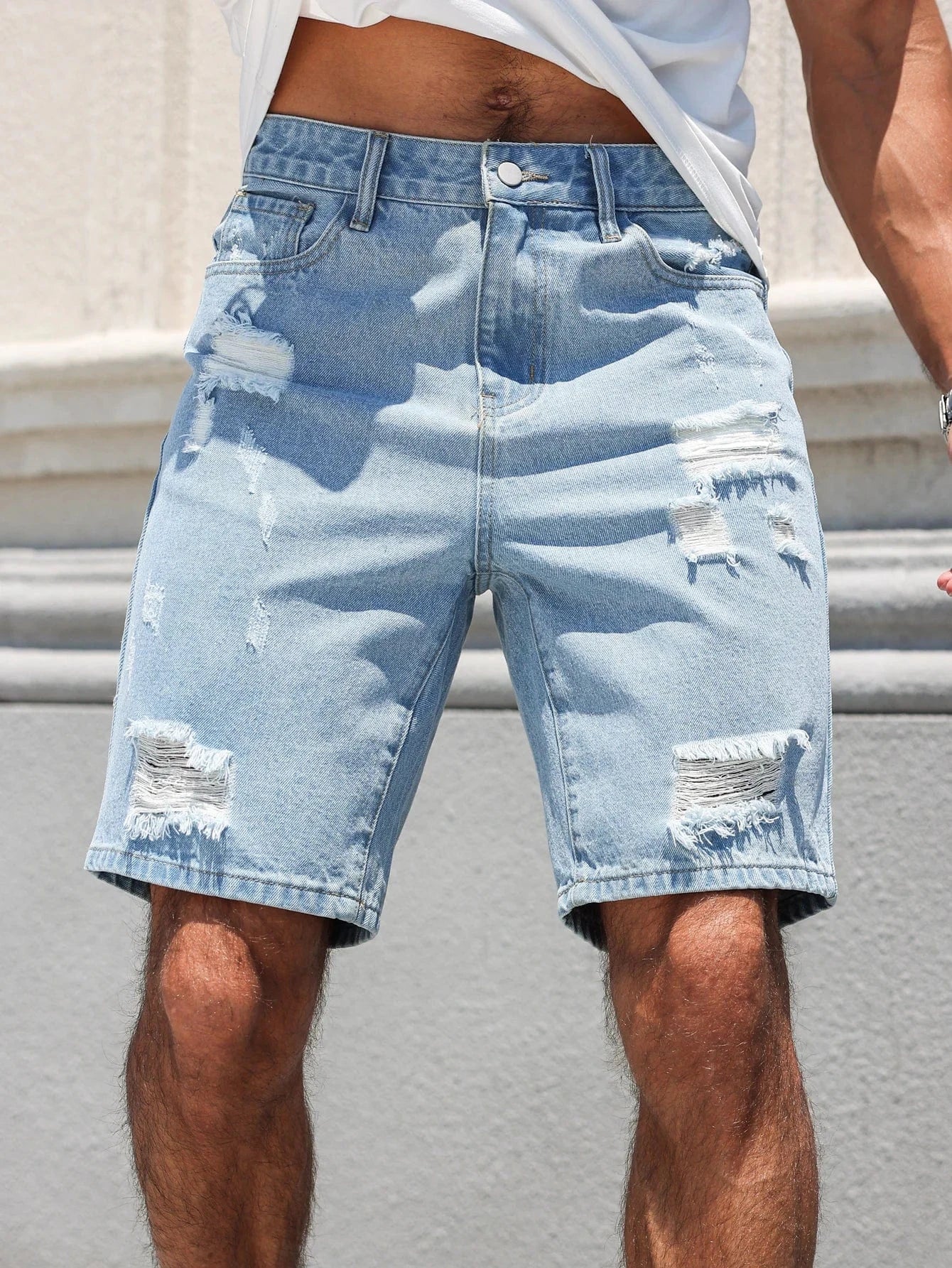 Hole-washed Water Buffalo Denim Short Pants - Men's Trendy Loose Straight Five-Piece Casual Shorts - Summer New Style