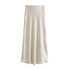 TRZA Women's Soft Touch Silk-Like Midi Skirt High Waist Elastic Waistband Chic Fashion Female Skirts Elegant Mujer