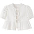 HXAO Women's Shirt Summer 2024 Shirts & Blouses White Black Leopard Shirt Frill Loose Fit Top Short Sleeve Crop Lace-Up Blouses