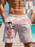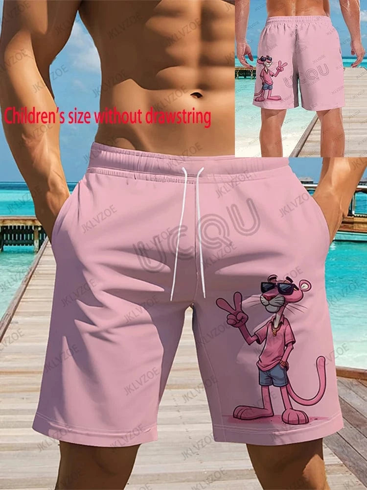 MINISO Summer New Cartoon Pink Panther Print Shorts For Men Quick Dry Beach Swimming Vacation Casual Kids/Adult Shorts Pants