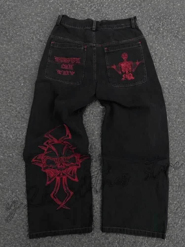 New street fashion trend skeleton embroidered jeans Harajuku Y2 straight leg wide leg pants casual jeans