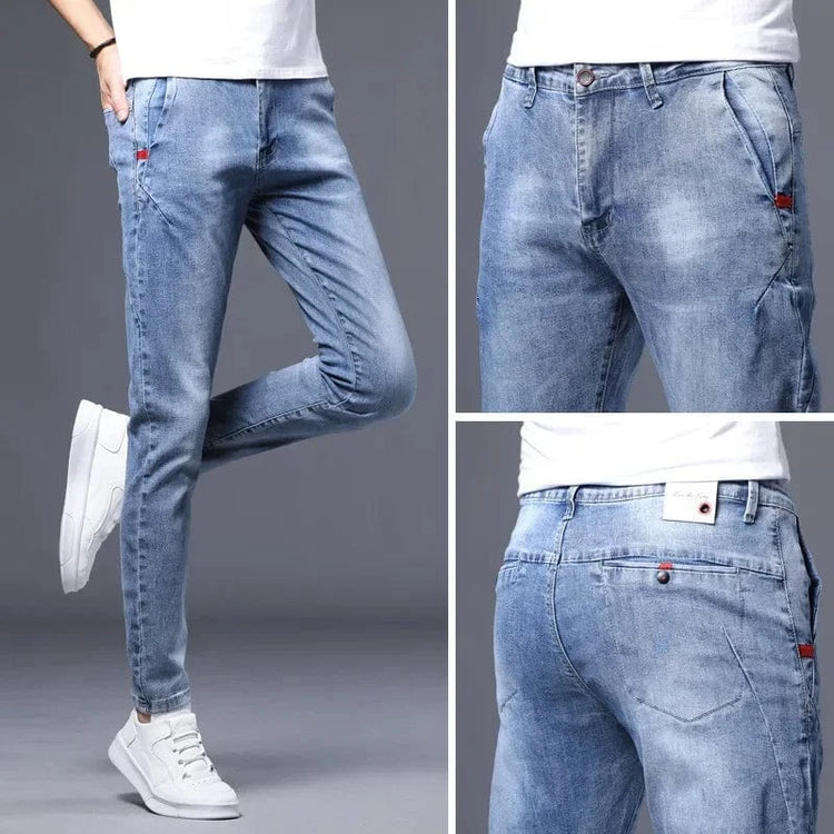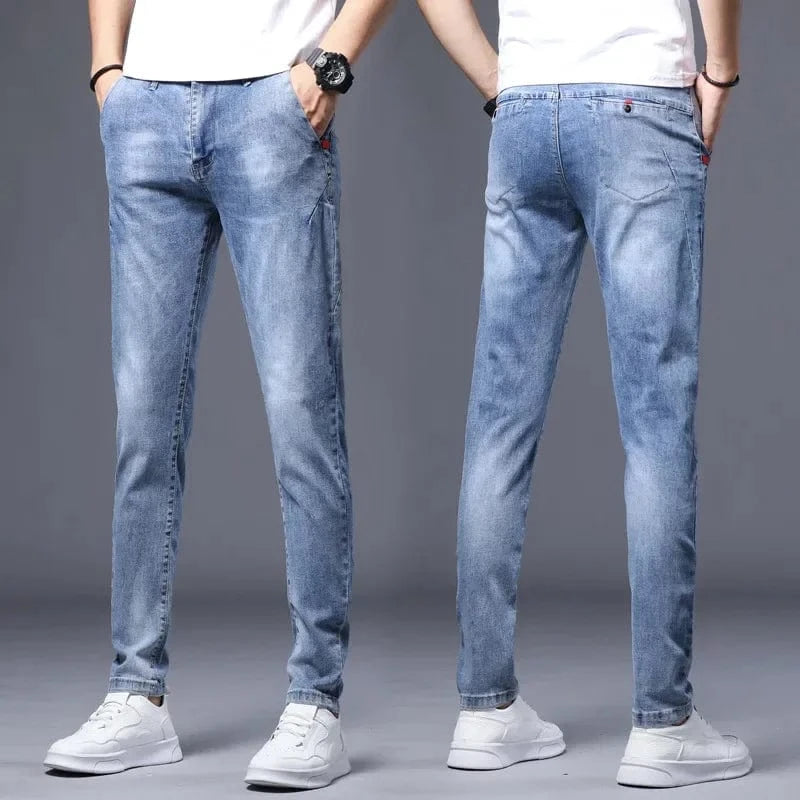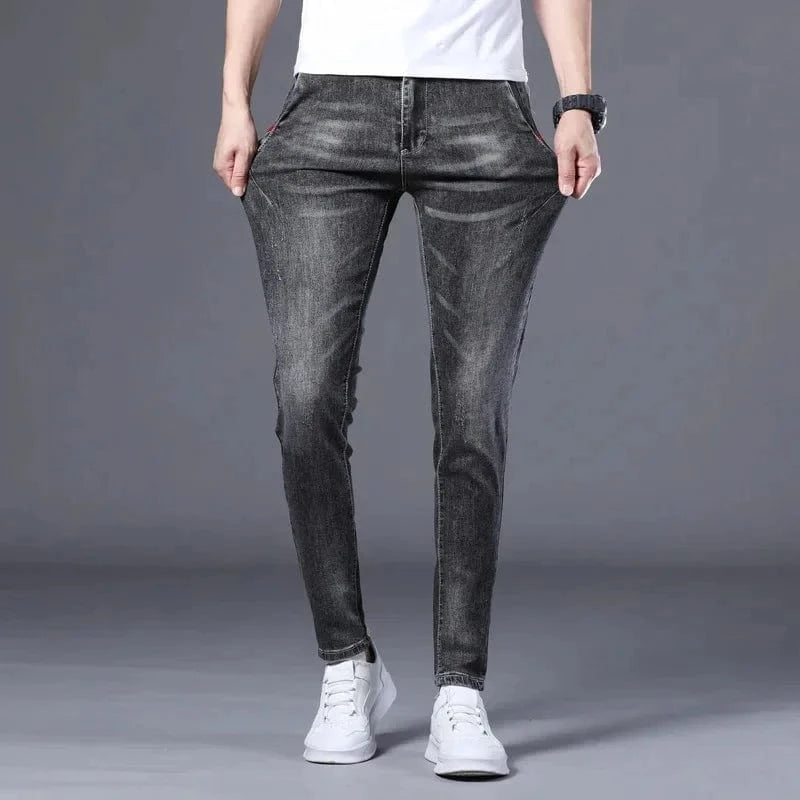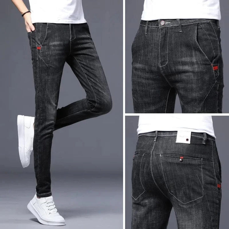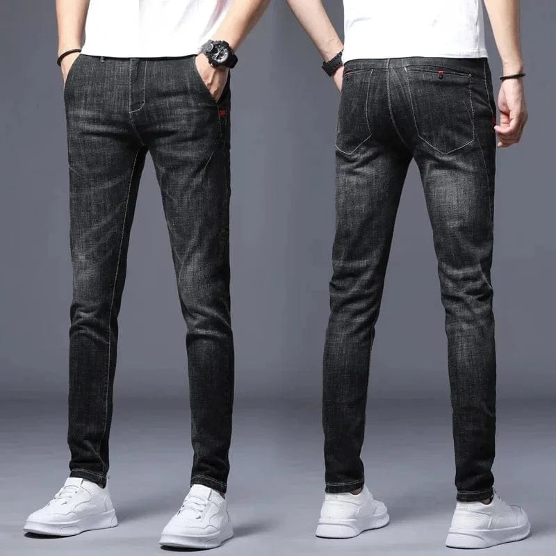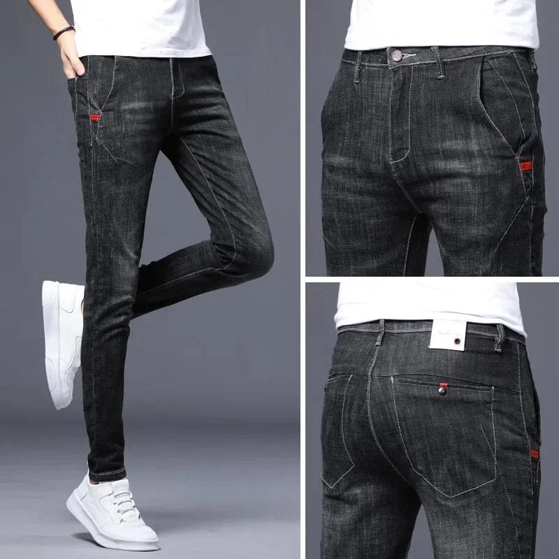 Fashionable Mid-Waist Men's Jeans 8605 Elasticity Type Korean Style Casual Trousers For Young Teens