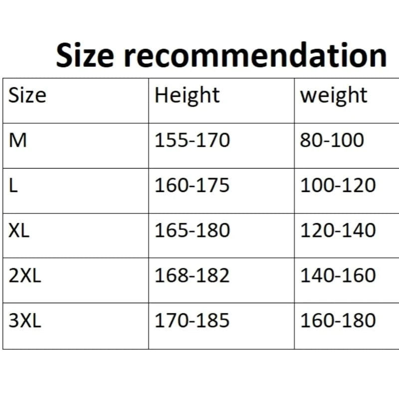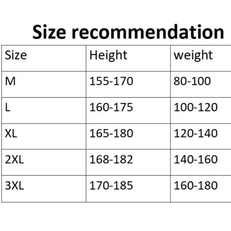 size_info: {"sizeInfoList":[{"length":{"cm":"160-170","inch":"62.99-66.93"},"size":"M","vid":-1},{"length":{"cm":"165-175","inch":"64.96-68.90"},"size":"L","vid":-4},{"length":{"cm":"170-178","inch":"66.93-70.08"},"size":"XL","vid":-5},{"length":{"cm":"170-185","inch":"66.93-72.83"},"size":"2XL","vid":-6},{"length":{"cm":"172-188","inch":"67.72-74.02"},"size":"3XL","vid":-7}]}