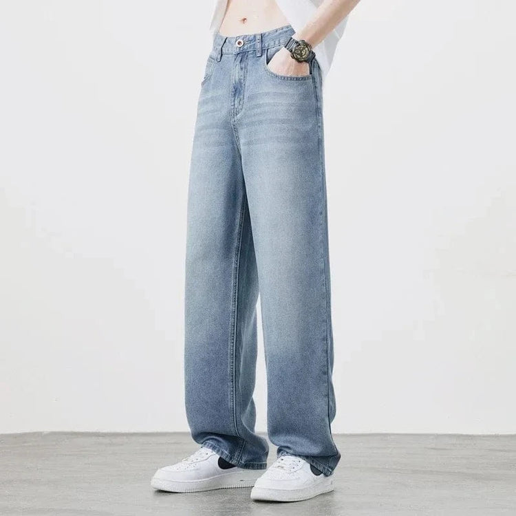 2025Spring Autumn New Men Straight Vintage Fit Jeans Casual Trousers High Quality Male Korean Fashion Baggy Wide Leg Denim Pants