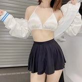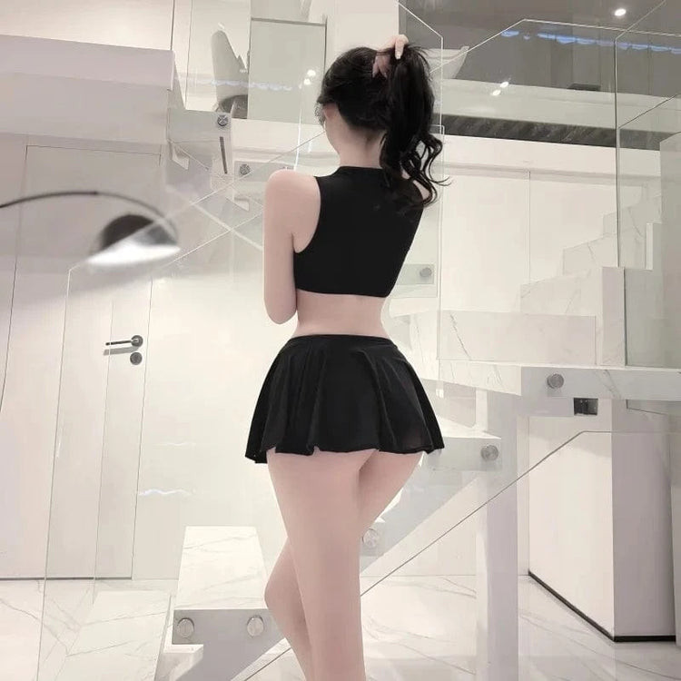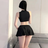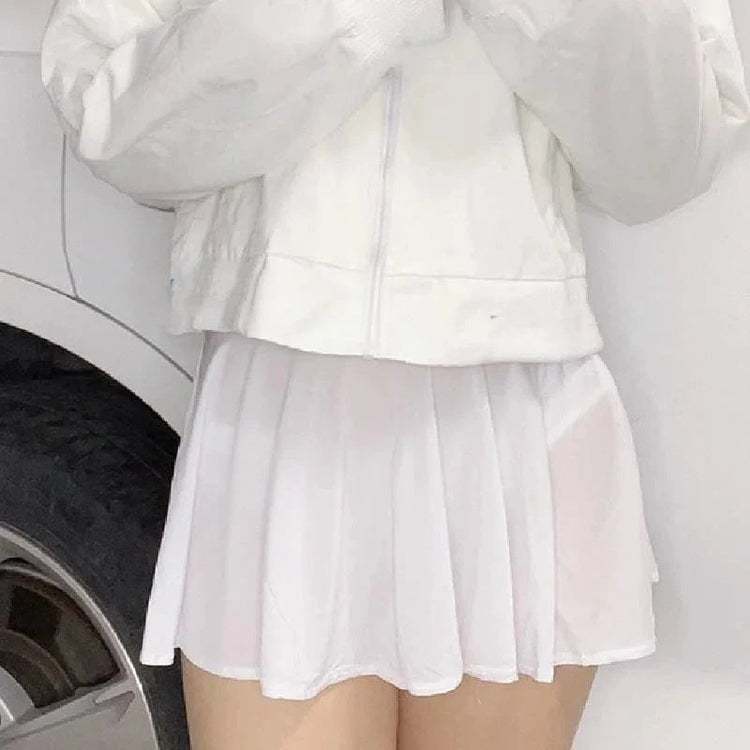 NEWJOINFUN Korean Style Red Pleated Mini Skirts Fashion Christmas High Waist Japan Girl A Line Short Skirt for Women Black White